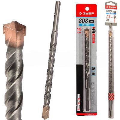 Бур Зубр  для перфораторов предназначен для ударно-вращательного сверления отверстий в твердых материалах (бетон, кирпич, камень). Четырехзаходная спираль способствует быстрому и эффективному удалению сверлильной пыли из отверстия, кроме того приводит к уменьшению нагрева оснастки. Твердосплавный наконечник ВК8 с центрирующим резцом - для максимально точного засверливания. Благодаря своей конструкции бур имеет высокую износостойкость и длительный срок эксплуатации. Для перфораторов с системой крепления SDS-plus.