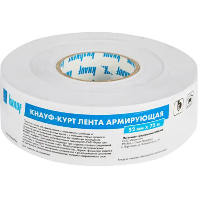 Лента армирующая КНАУФ-Курт — это армирующая лента, изготовленная из белой специальной бумаги с армирующими синтетическими волокнами.