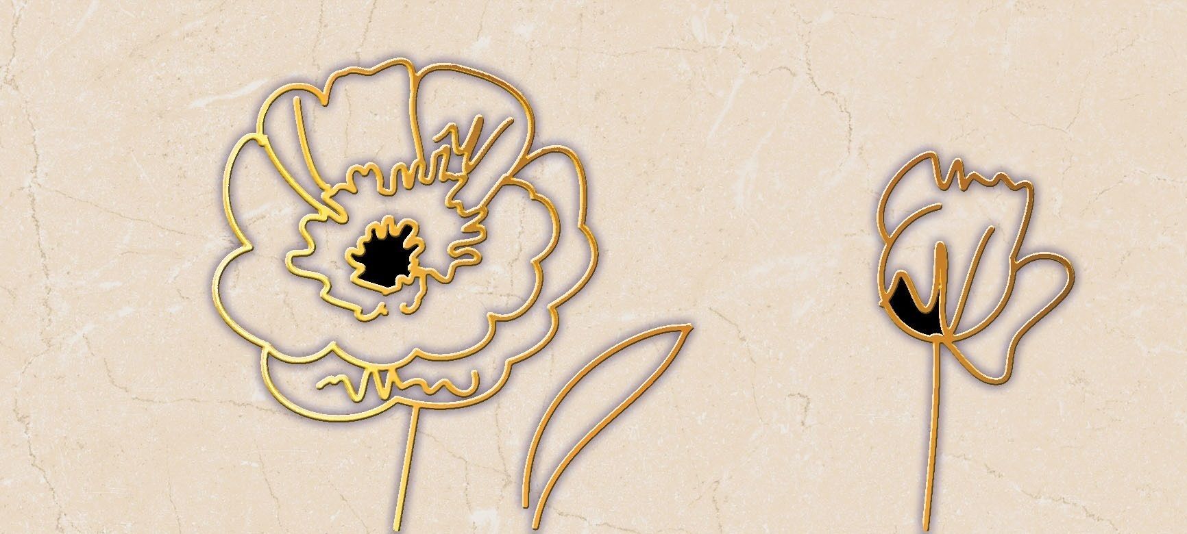 Настенная плитка Валенсия от Сокол покрыта глянцевой глазурью. Она отлично перекликается с золотым оформлением декораций. Золотые маки красуются на панно из четырех плит. Рисунок на нем легкий, графичный, словно созданный на бегу, как эскиз. Волнистые золотые линии пересекают фон вертикальных и горизонтальных бордюров.