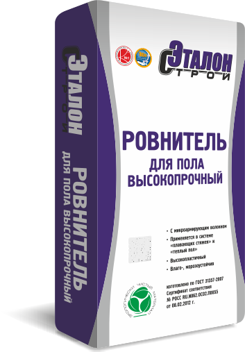 Высокопрочный ровнитель для пола «Эталон» используется для выполнения качественного базового слоя при выравнивании полов и для финишного выравнивания поверхности. Используется внутри сухих и влажных помещений, в системе «теплый пол».