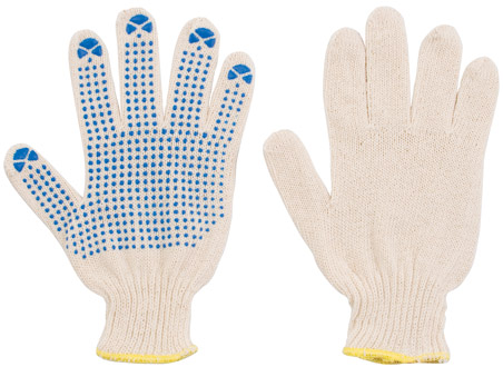 Перчатки вязаные (4 нити), х/б, с ПВХ, 10 класс вязки 12484