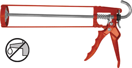 Скелетный, усиленный. Для выдавливания герметика из стандартной емкости 310 мл. Противокапельная система. Материал: инструментальная сталь, алюминий.