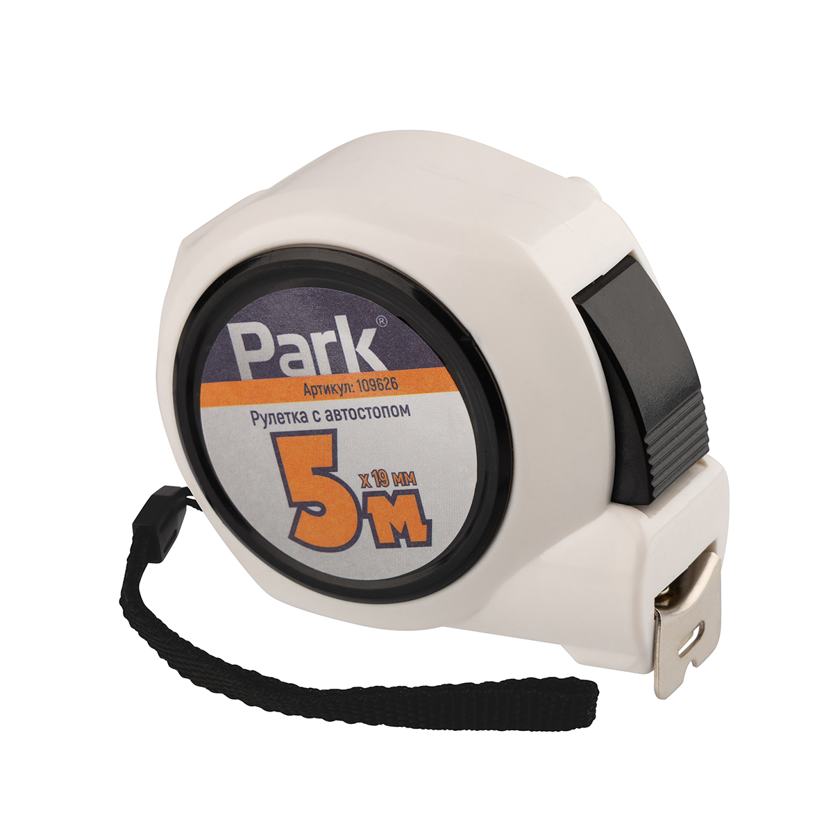 Рулетка Park имеет прочный корпус из пластика, устойчивого к нагрузкам, в том числе к падениям. Оснащена автостопом, который надежно удерживает ленту. Рулетка имеет четкую, хорошо различимую градуировку и обеспечивает высокую точность измерений.