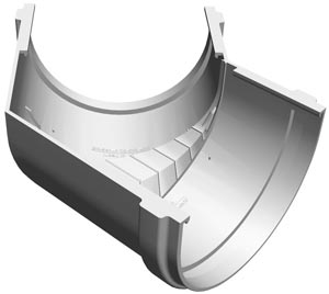 Устанавливается на внешних и внутренних углах кровли и предназначен для соединения желобов под углом 45° в целях изменения направления движения воды