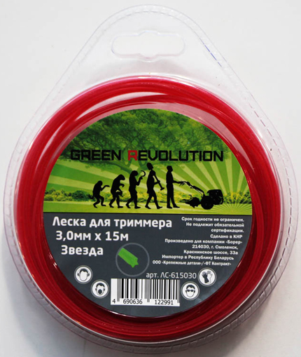 Леска Green Revolution для триммера 3,0х15м "крученый квадрат" (100% нейлон) (ЛС-415030)